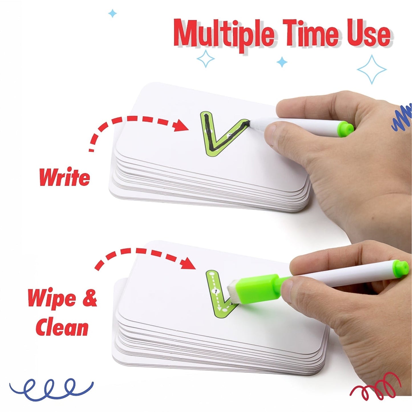 - Included Components: Chanak Spelling Genius comes with 30 front and back flashcards with image and alphabet tracing on it. It also includes 26 front and back small & capital tracing activity cards. To play with this flashcard we also add 2 sets of small and capital wooden alphabet blocks and 1 Wipe-and-Write Pen.