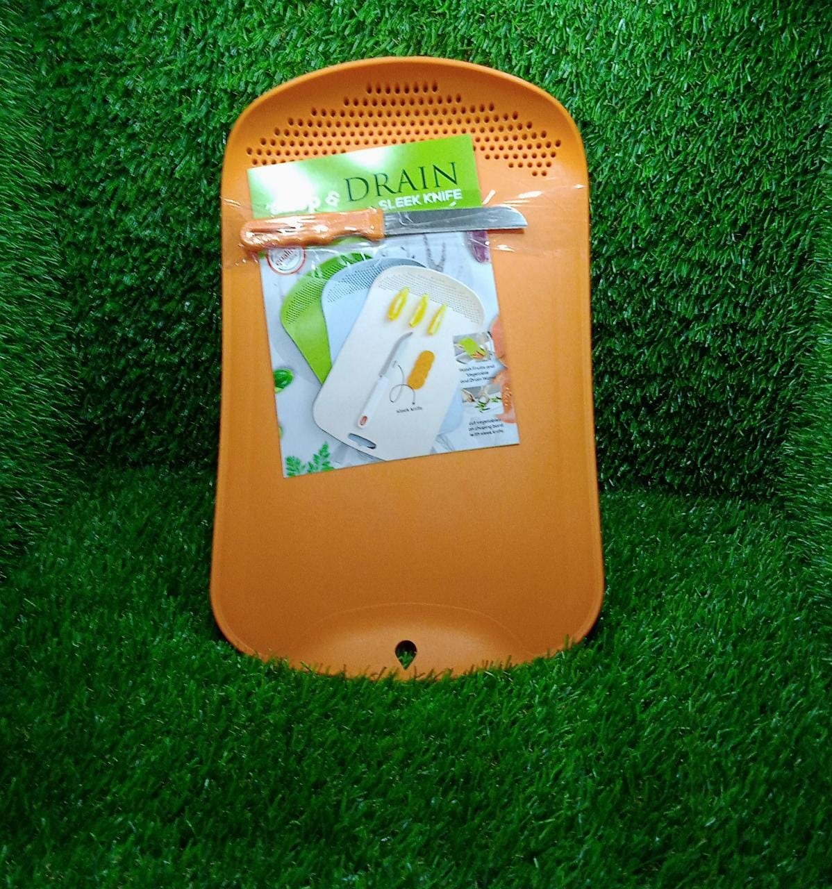Chop & Drain Vegetables Fruits Chopping Board Sleek Knife