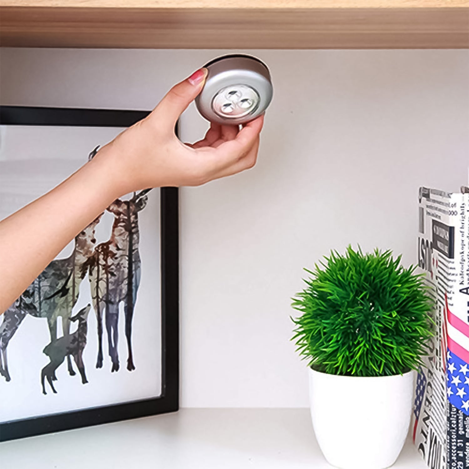 Illuminate your space effortlessly with this 3-LED Battery-Operated Touch Light. Designed for convenience and versatility, this stick-on puck light provides a bright and focused beam with just a gentle press. Its compact and cordless design allows it to be mounted anywhere—perfect for dark closets, cabinets, hallways, drawers, and even inside cars.