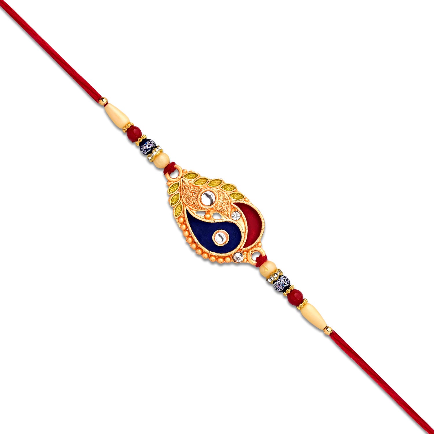 Elegant Rakhi With Enamel Paisley Design And Gold-tone Embellishments
