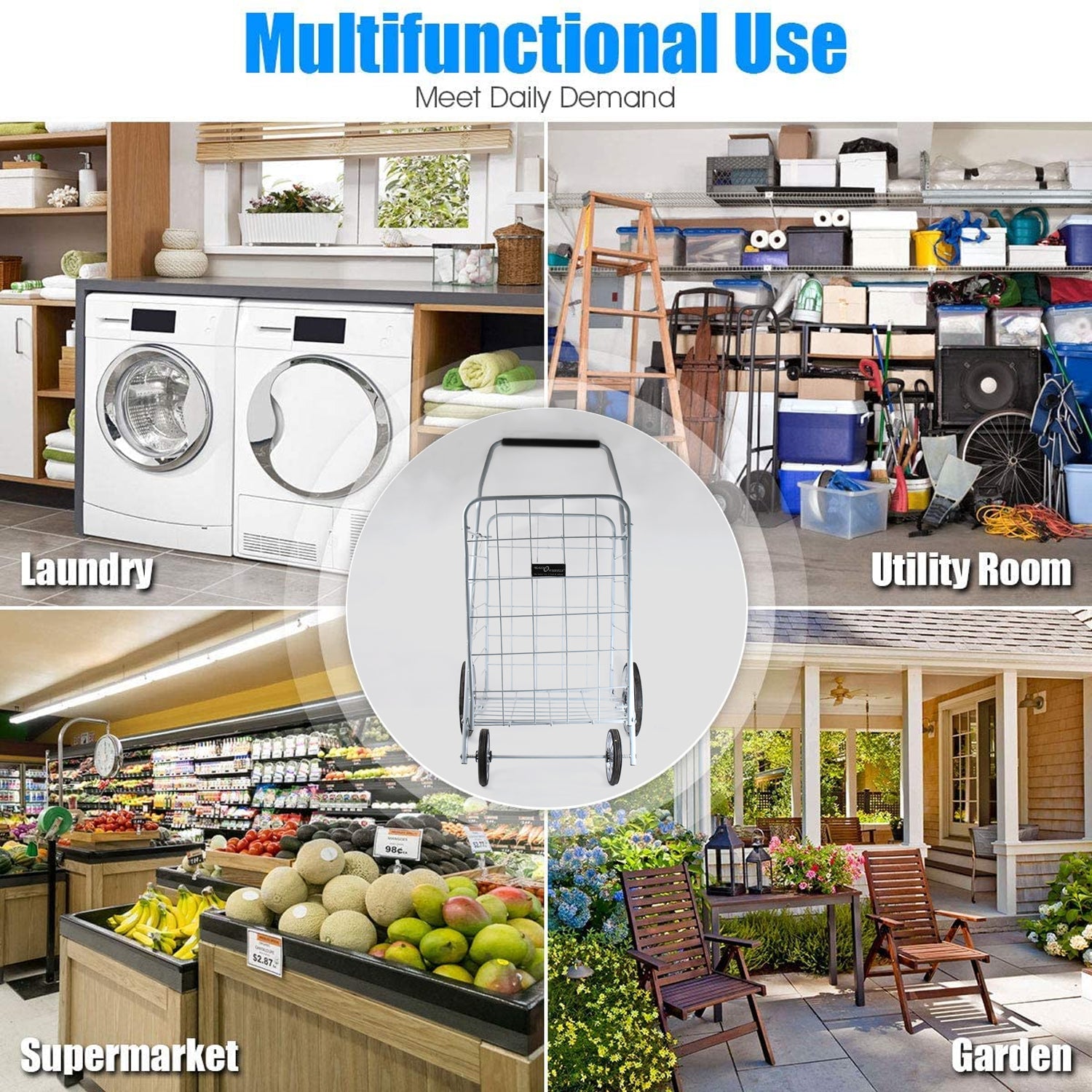 Foldable Shopping Trolley with Wheels Shopping Cart Utility Folding Cart with Dual Swivel Wheels Capacity for Carrying Goods, Grocery, Vegetables, Sports Equipments I Light weight Easy to Move Holds (MOQ :- 2 Pc)