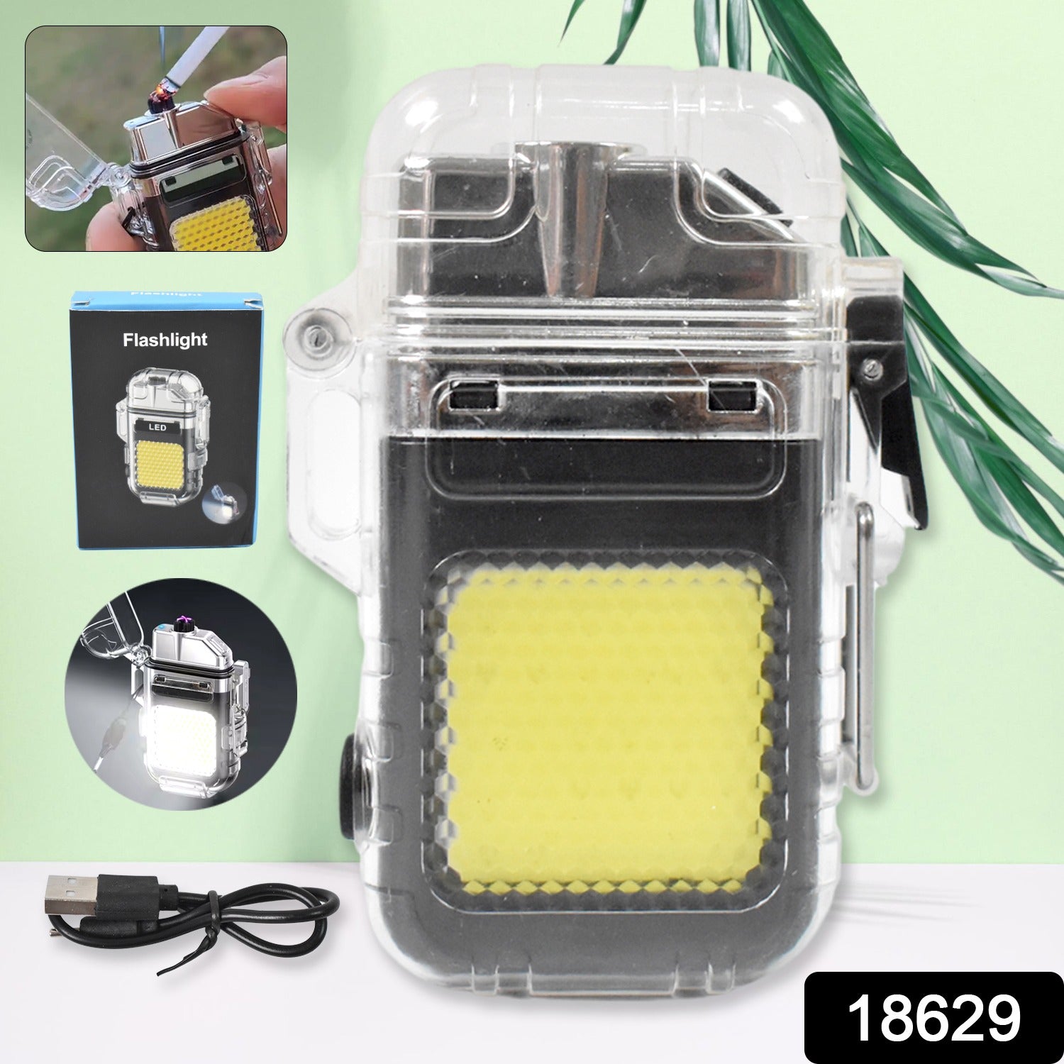 Usb Rechargeable Electric Lighter 3 Modes Cob Flashlight (1 Pc)